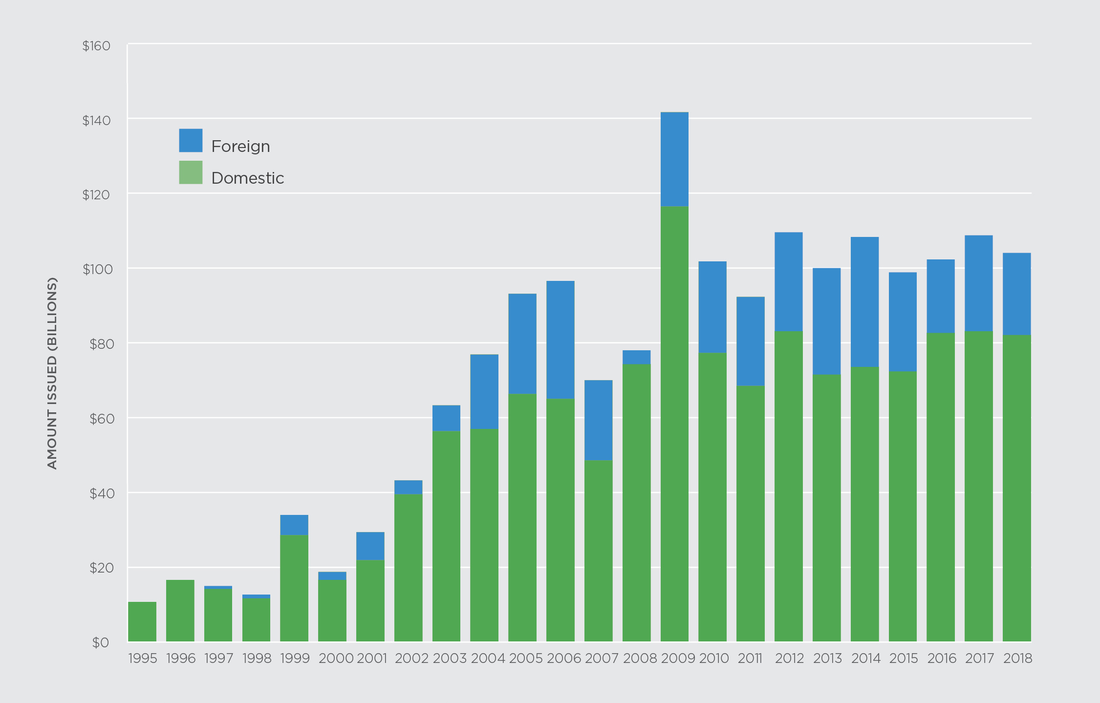 Figure four: Credit issuance in Australia by domestic and foreign issuers